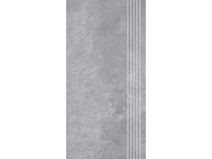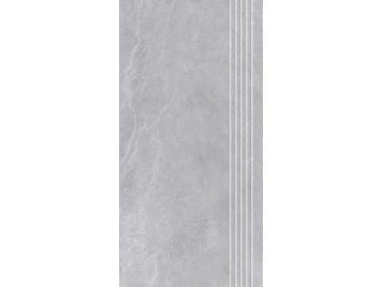 Keramická matná hladká mrazuvzdorná dlažba určená na schody imitace kamene ve světle šedé barvě, do interiéru i exteriéru, vhodné do koupelny, chodby, na teras