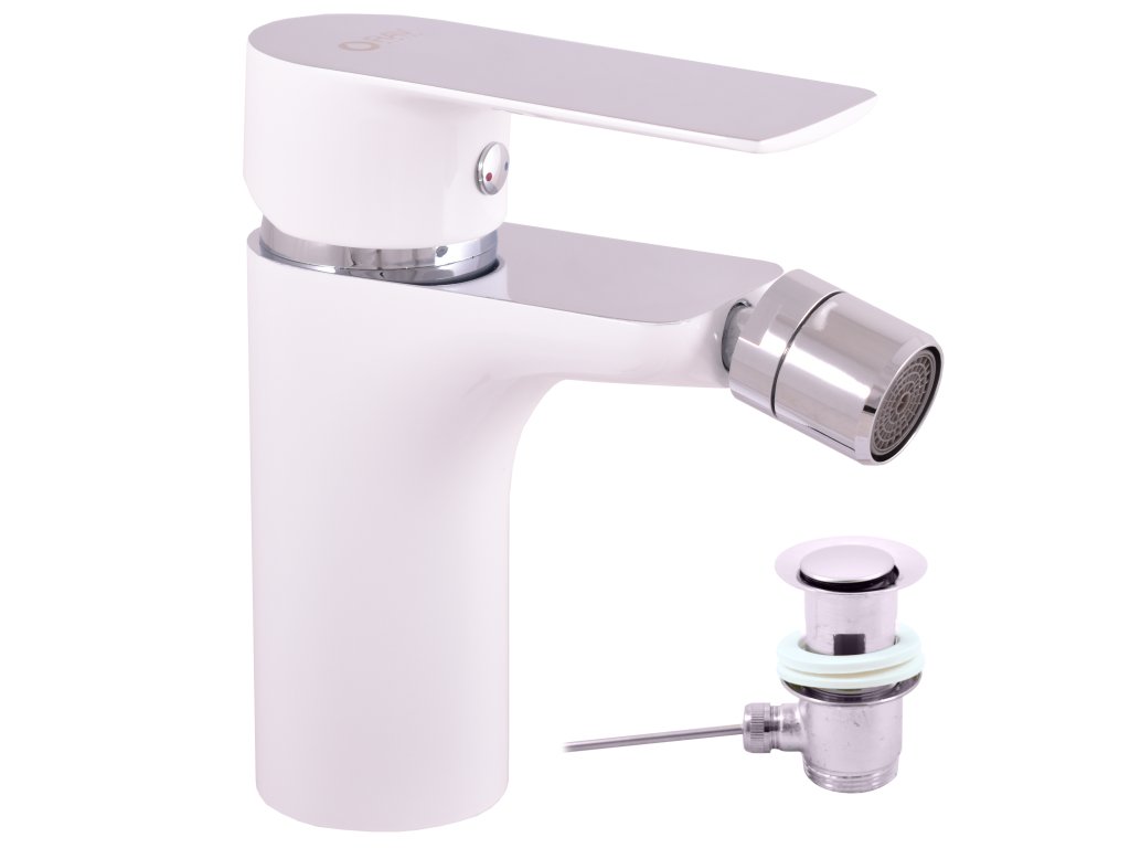 Vodovodní baterie bidetová stojánková s otvíráním odpadu.