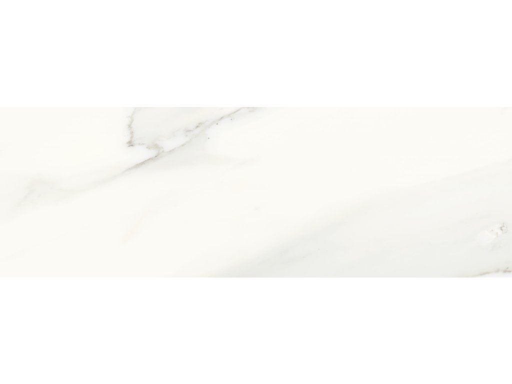 Rektifikované. Obklad v bílé barvě v imitaci mramoru o rozměru 39,8x119,8 cm a tloušťce 10 mm s lesklým povrchem. Vhodné pouze do interiéru. S velkými a nahodilými odchylkami v odstínu barev, struktury povrchu a kresby.