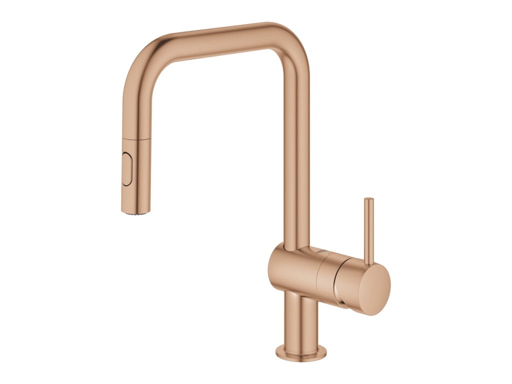 Dřezová baterie GROHE Minta s vytahovací sprškou, 2 proudy Warm Sunset 32322DL2