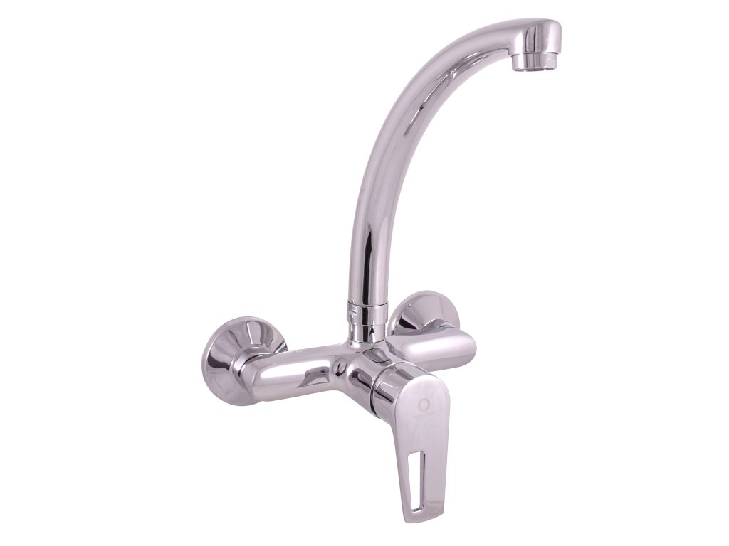 Vodovodní baterie dřezová/umyvadlová nástěnná s otočným oválným ústím.