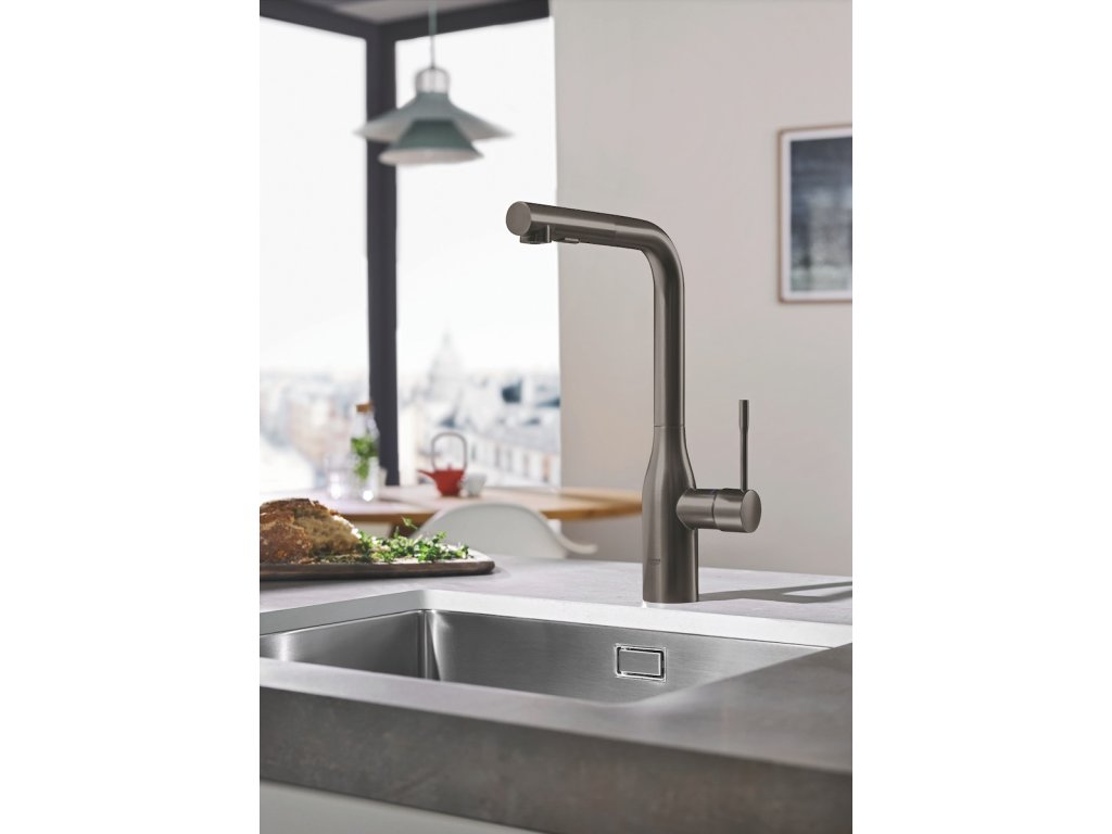 Dřezová baterie GROHE Essence New s vytahovací sprškou Brushed Hard Graphite 30270AL0