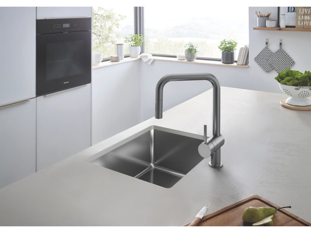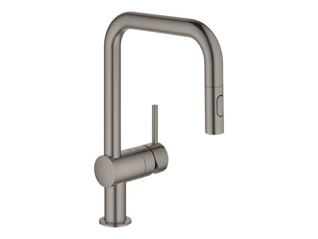 Dřezová baterie GROHE Minta s vytahovací sprškou, 2 proudy kartáčovaný Hard Graphite 32322AL2