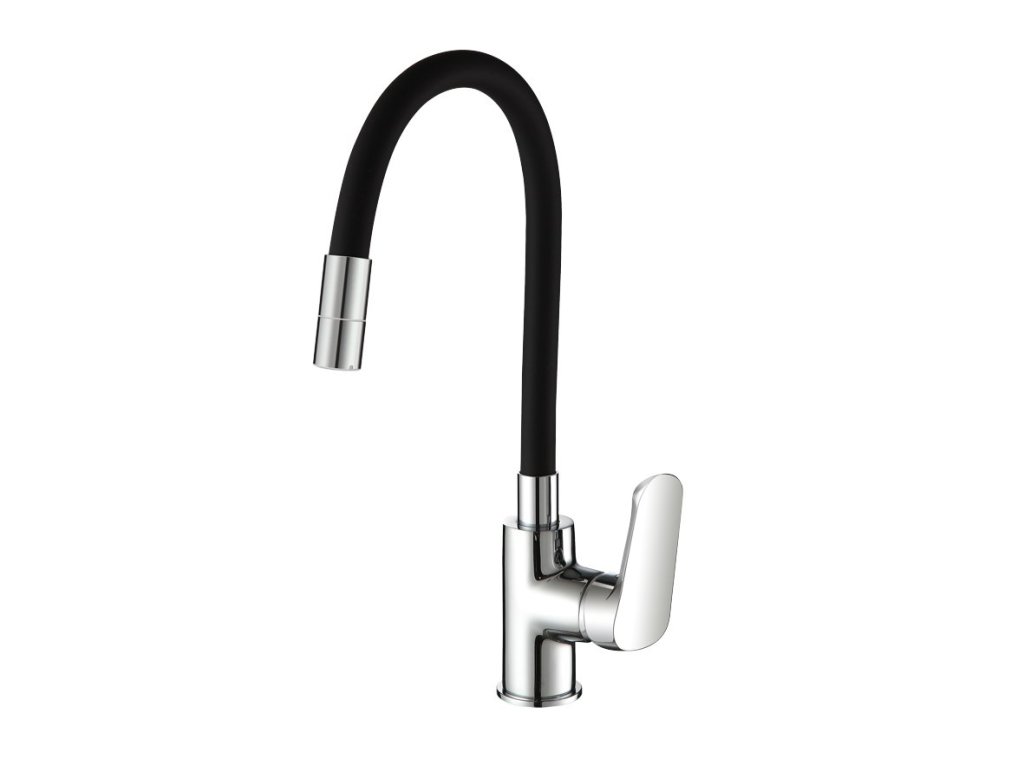 Dřezová stojánková vodovodní baterie s flexibilním (tvarovatelným) výtokovým ramínkem nabízí možnost "natvarovat" výtokové ramínko do co nejúčelnější polohy. Velmi praktickým konstrukčním vylepšením ramínka je dvoupolohový perlátor umístěný na jeho konci (viz obr. ve fotogalerii). Ramínko baterie je plně otočné (360°)