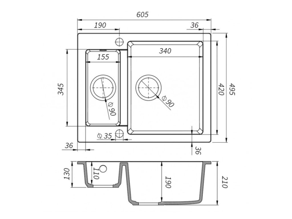 Dřez Fabero 605.2 nabízí dvě mycí komory: druhá, mělčí komora nejen usnadňuje odtok vody, ale je také ideální pro mytí ovoce a zeleniny nebo pro rozmrazení masa případně pro sušení příborů. V menší komoře najdete přepad, který brání před případným přetečením vody. Do dřezu Fabero 605.2 lze vytvořit otvory pro instalaci kuchyňské baterie, zapuštěného dávkovače saponátu nebo pro tlačítko ovládání drtiče kuchyňského odpadu.