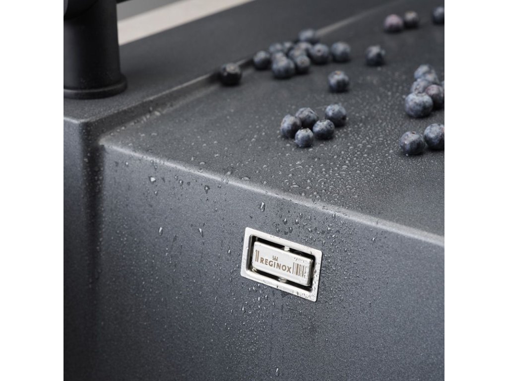 Dřez je z granitu (80% drcený mramor, kvalitní barviva a pryskyřice). Granit má díky své přírodní podstatě skvělé mechanické vlastnosti. Granitový dřez není snadné poškrábat, zvládá horkou vodu a je stálobarevný. Povrch dřezů Reginox je mimořádně hladký, případné nečistoty se nemají kde usadit. Údržba se provádí pouhým setřením vlhkým hadříkem.