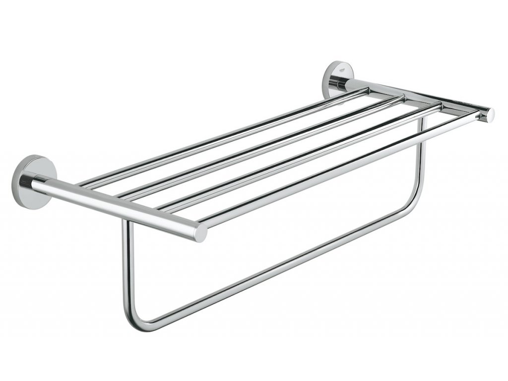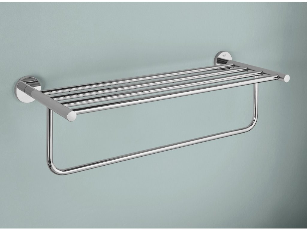 Držák na více ručníků GROHE BauCosmopolitan vám dává mnoho příležitostí, jak využít omezený prostor, ať již si zvolíte na něj zavěsit několik ručníků nebo ponechat je složené na jeho horní straně. Tento držák je rovněž vhodný na odložení koupelnového příslušenství, které se občas hodí, ale nechcete, aby vždy překáželo. Jeho tradiční design je velice funkční a atraktivní zároveň. Chromový povrch držáku dodává elegantní, zářivý lesk.