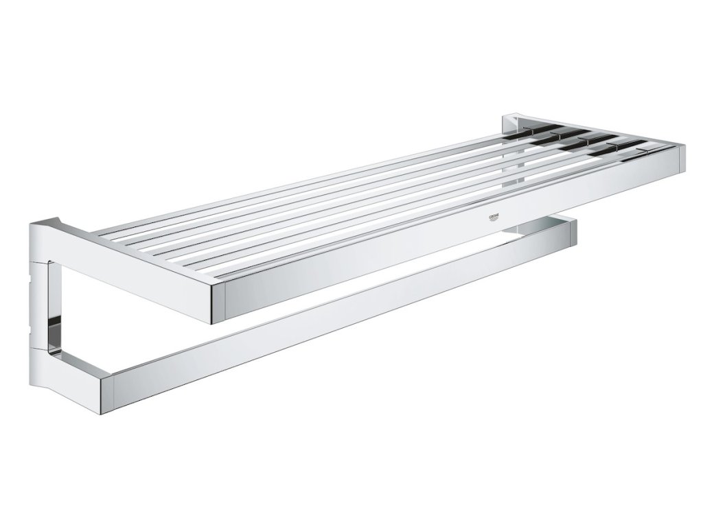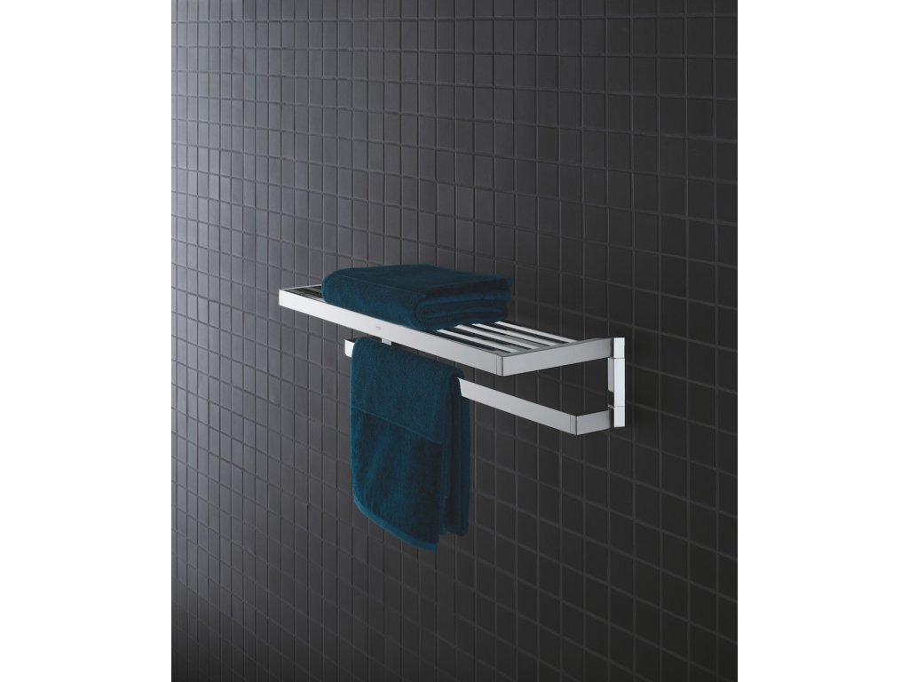 Vytvořit sjednocený koupelnový interiér nebylo nikdy jednodušší. Stačí do něj zahrnout precizně zpracované doplňky z řady GROHE Selection Cube, například tento držák na více ručníků s poličkou. Jeho minimalistický design a precizní zpracování z těch nejlepších materiálů zaručuje fantastický vzhled v každé moderní koupelně. Stačí zavěsit vaše oblíbené ručníky! Samozřejmostí je přítomnost všech prémiových technologií GROHE, na které jste zvyklí. Odolný chromový povrch GROHE StarLight zaručuje blyštivý vzhled a snadné čištění. Rychlejší, jednodušší a bezproblémová instalace se systémem GROHE QuickFix zkracuje dobu instalace až o 40 %. Pořízení nového doplňku nebylo nikdy jednodušší. Doplňky GROHE Selection Cube – precizní zpracování, nejkvalitnější materiály a nadčasový design, který přetrvá.