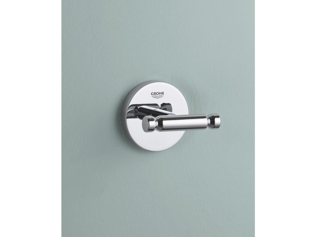 Háček na koupací plášť v chromovém provedení. Vhodné pro šroubování (obsahuje šrouby, hmoždinky) a lepení (lepidlo 40 915 000 je nutné objednat zvlášť). Skryté upevnění.