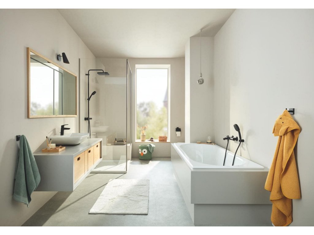 Háček v barevném provedení černá mat. Šířka tohoto koupelnového doplňku od značky GROHE je 5,4 cm a je vyroben z materiálu kov. Montáž lepením i vrtáním.