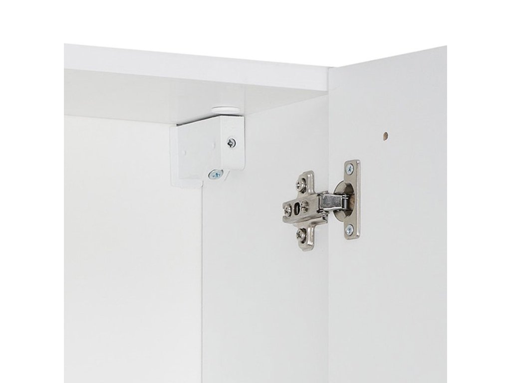 Korpus skříněk, čelní plochy a police jsou vyrobeny z LTD desky. Čela skříněk jsou lakované lesklým bílým lakem.