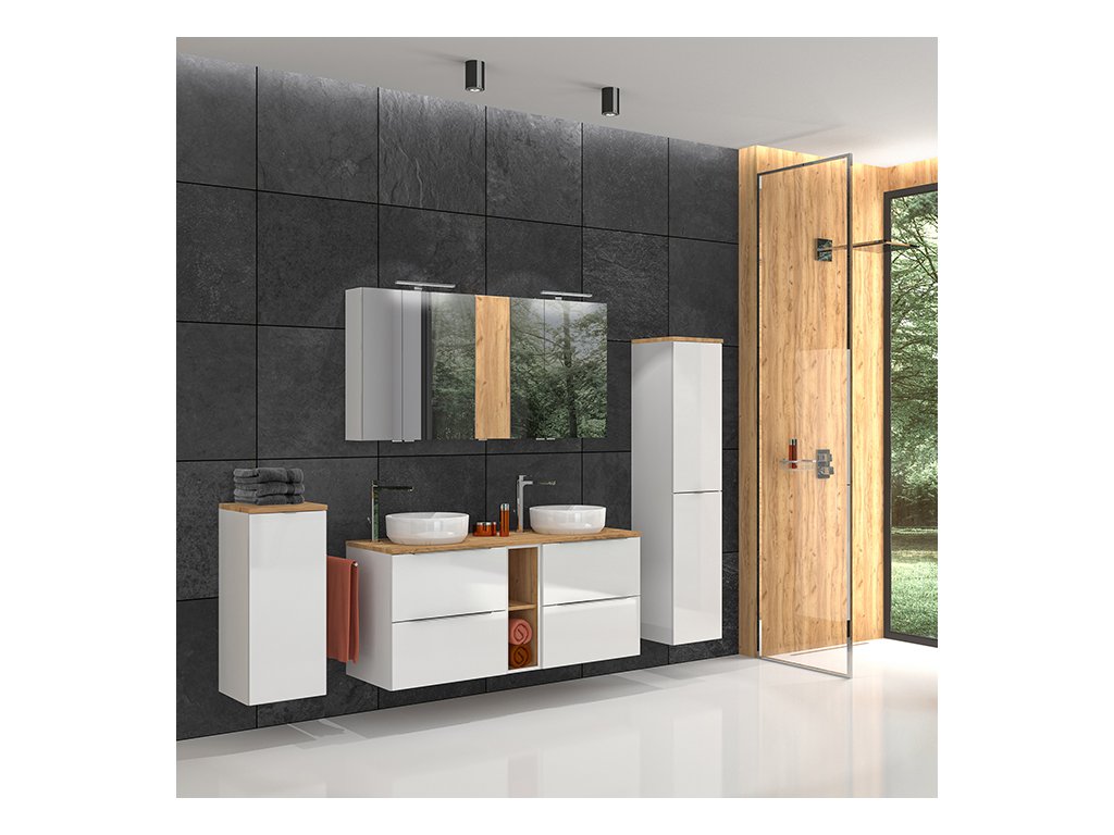 | Materiál: | korpus: LTD 16 mm, vnější strana: bílý lak, lesk, vnitřní strana: dekor Dub Country police: sklo |