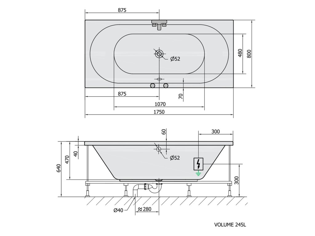 VIVA B hydromasážní vana, 175x80x47cm, Highline Hydro, chrom