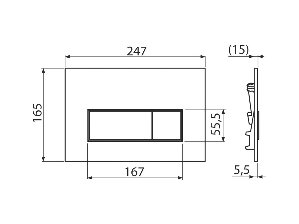 - Tlačítko minimálně vystupuje nad obklad díky tlouštce pouhých 5,5 mm