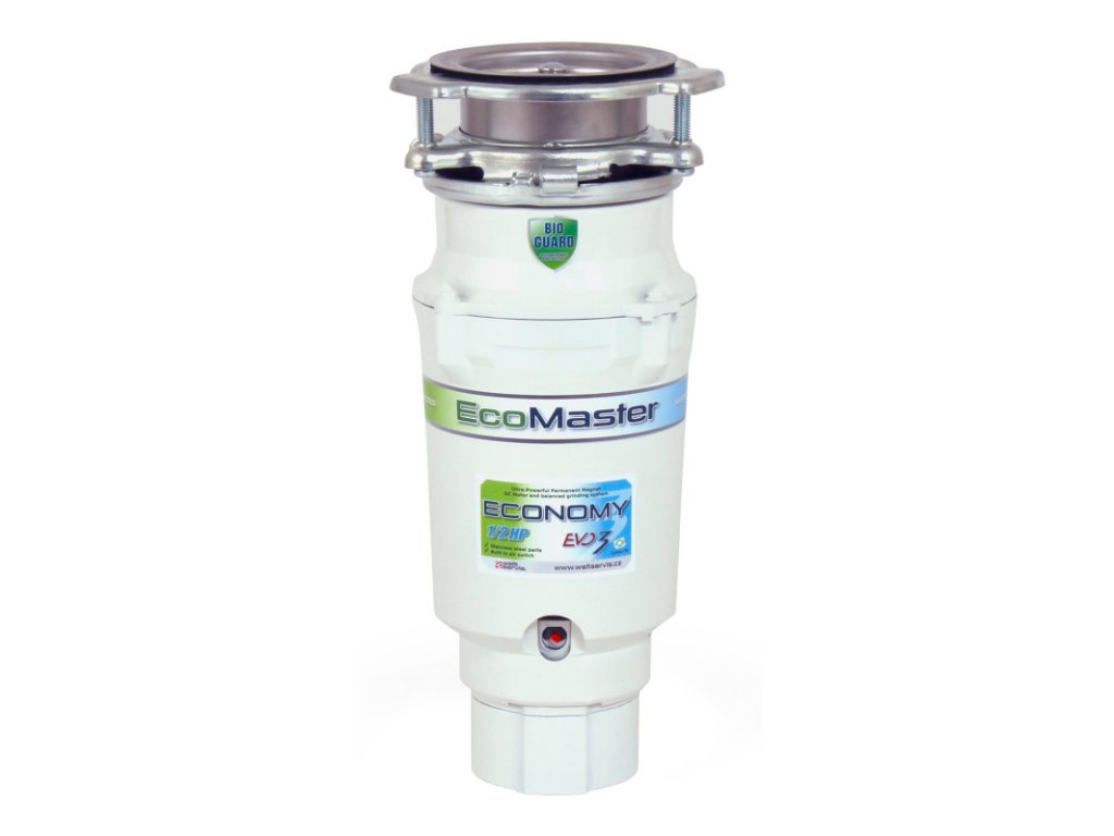 Drtič kuchyňského odpadu (potravinovych zbytku – zbytku jidla) EcoMaster Economy je základní model, určen pro menší domácnosti o 2–3 osobách. Dále vhodný pro místa, kde je nestandardní, případně omezený prostor pro montáž. Všechny drticí komponenty jsou z kvalitní nerezové oceli. Odhlučnění je provedeno překrytím motoru.