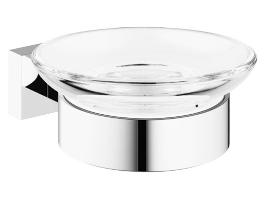 Praktická nástěnná skleněná mýdlenka s kovovým držákem ESSENTIALS CUBE, a chromovým povrchem StarLight, je vhodným koupelnový doplňkem.