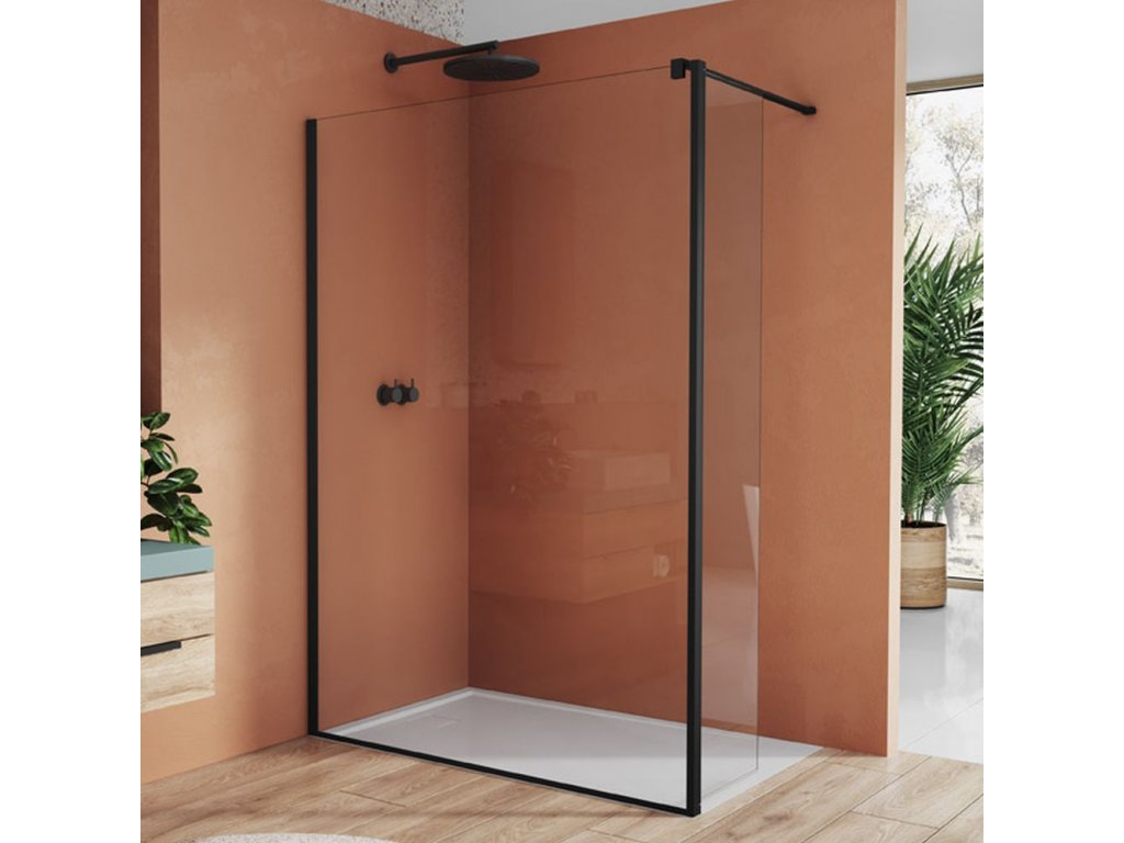 Montážní set s krátkou otočnou stěnou v 90° ze 6mm bezpečnostního skla. Kotvicí a spojovací profil + krátká otočná stěna o šířce 421 mm. Délka vodorovné/stropní vzpěry 1500 mm. Maximální výška pro kotvení je 3000 mm. Dekor skla Shade - bílý sítotisk na přední straně skla pro zajištění intimity. Krátká otočná stěna částečně zamezí stříkání vody ze sprchovacího prostoru.