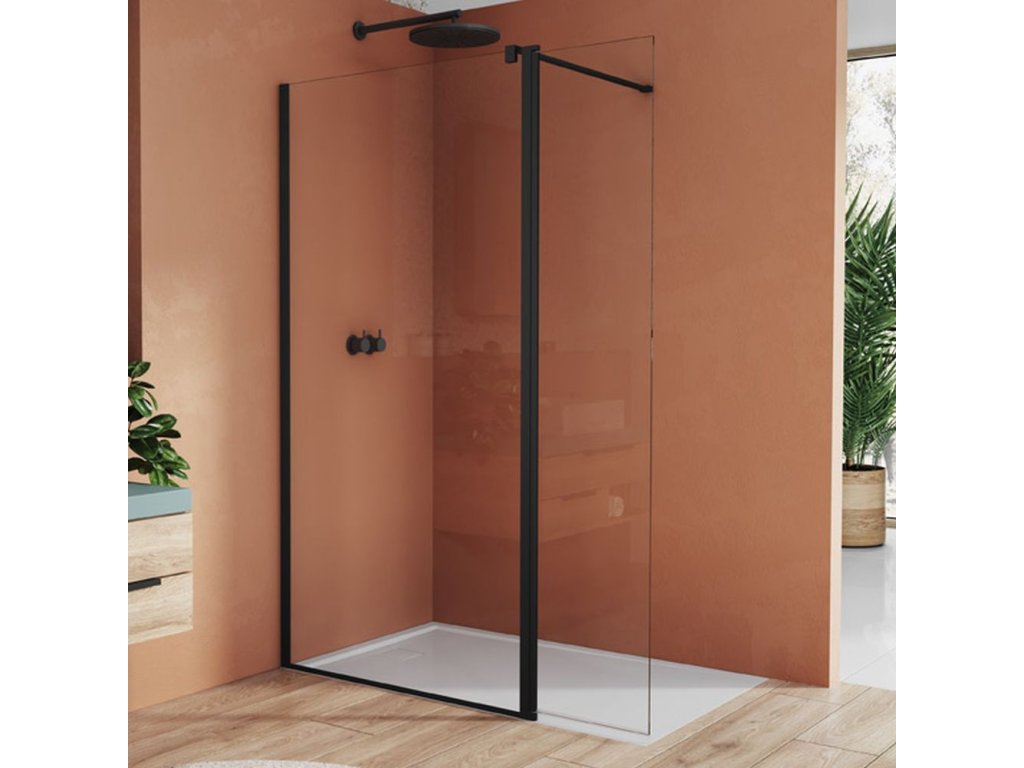 Montážní set s krátkou otočnou stěnou ve 180° ze 6mm bezpečnostního skla. Kotvicí a spojovací profil + krátká otočná stěna o šířce 406 mm. Délka vodorovné/stropní vzpěry 1500 mm. Maximální výška stropu pro kotvení je 3000 mm. Čiré sklo. Krátká otočná stěna částečně zamezí stříkání vody ze sprchovacího prostoru.