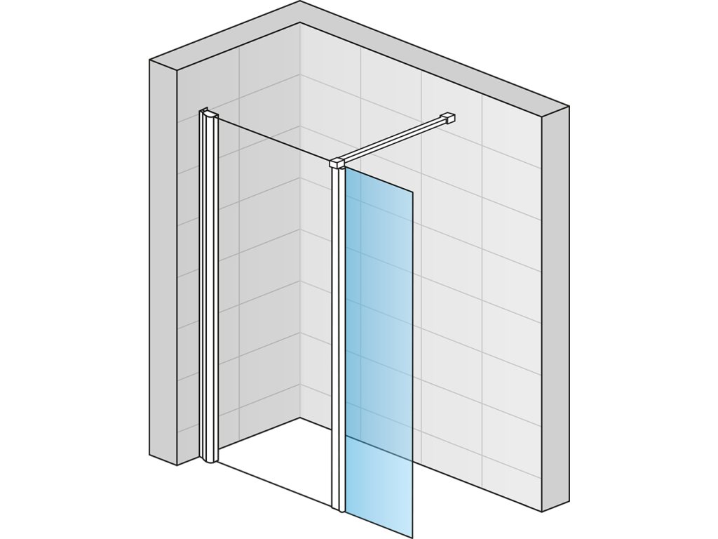 Montážní set s krátkou otočnou stěnou od RONAL. Stropní nebo stabilizační vzpěra, kotvicí a spojovací profil + krátká otočná stěna 400 mm. 6mm bezpečnostní sklo s antiplakovou úpravou Aquaperle. Délka vzpěry 1500 mm. Maximální výška stropu pro kotvení je 2600 mm. Určeno pro samostatnou pevnou stěnu TOPF2.