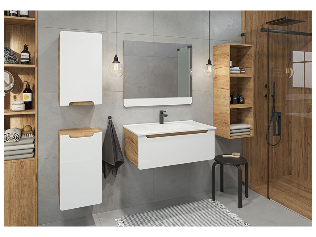 | Popis: | • univerzální doplňková koupelnová skříňka nízká • moderní kombinace bílých lakovaných čelních ploch a korpusu a doplňků v dekoru zlatý dub • 1 x dvířka s tichým dovíráním Soft-Close s frézovanými madly a možností změny směru otevírání • uvnitř skříňky je umístěna 1 výškově nastavitelná police z LTD bílé barvy • k zavěšení na stěnu je skříňka vybavena rektifikačními závěsy • skříňku lze zavěsit s frézovanými madly na dvířkách směrem nahoru i dolů • skříňku lze instalovat na stěnu buď samostatně, nebo v kombinaci s další skříňkou obrácenou o 180°, popřípadě lze kombinovat skříňky s univerzálním spojovacím dílem Lutecia O 35 |