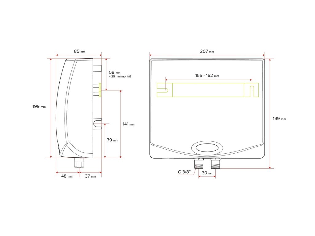 - montáž na beztlakové a běžně dostupné vodovodní baterie