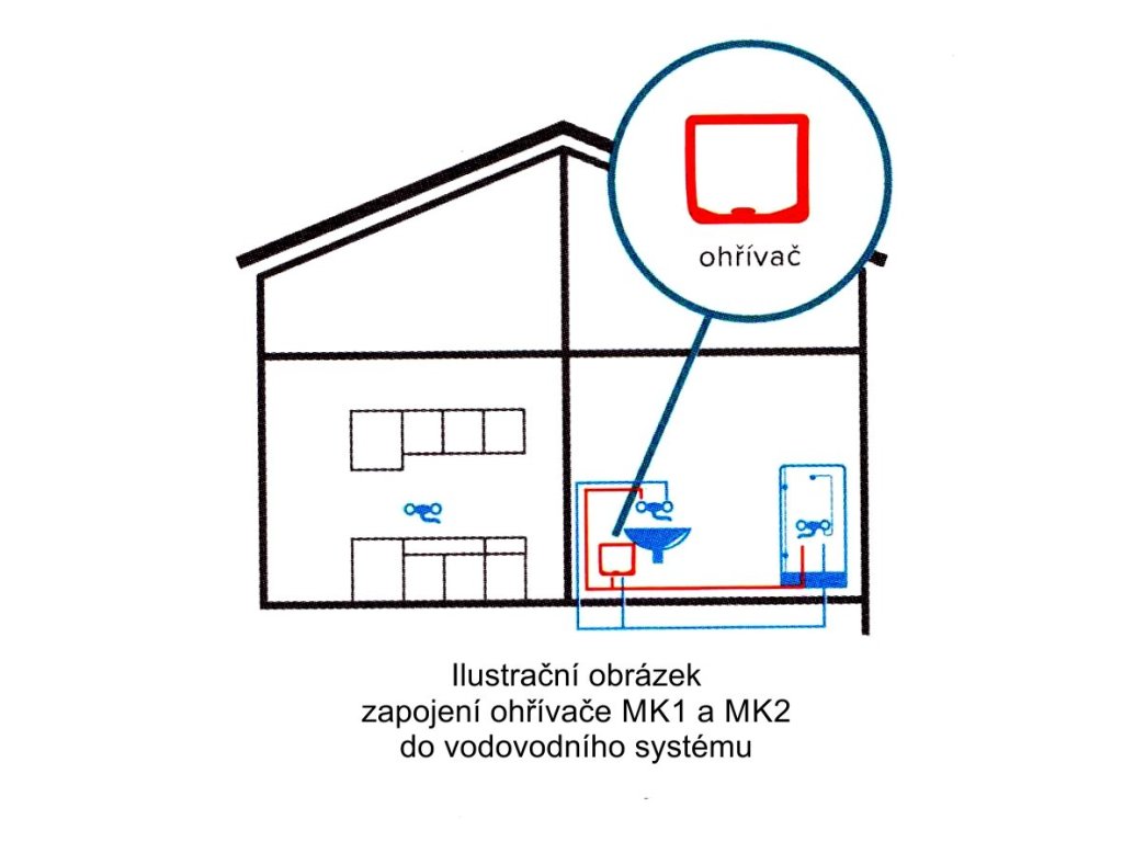 - dvoufázový tlakový průtokový ohřívač HAKL MK-2 (samostatný ohřívač bez baterie) je určen k napojení do vodovodního systému (1-3 odběrná místa) na existující vodovodní baterie