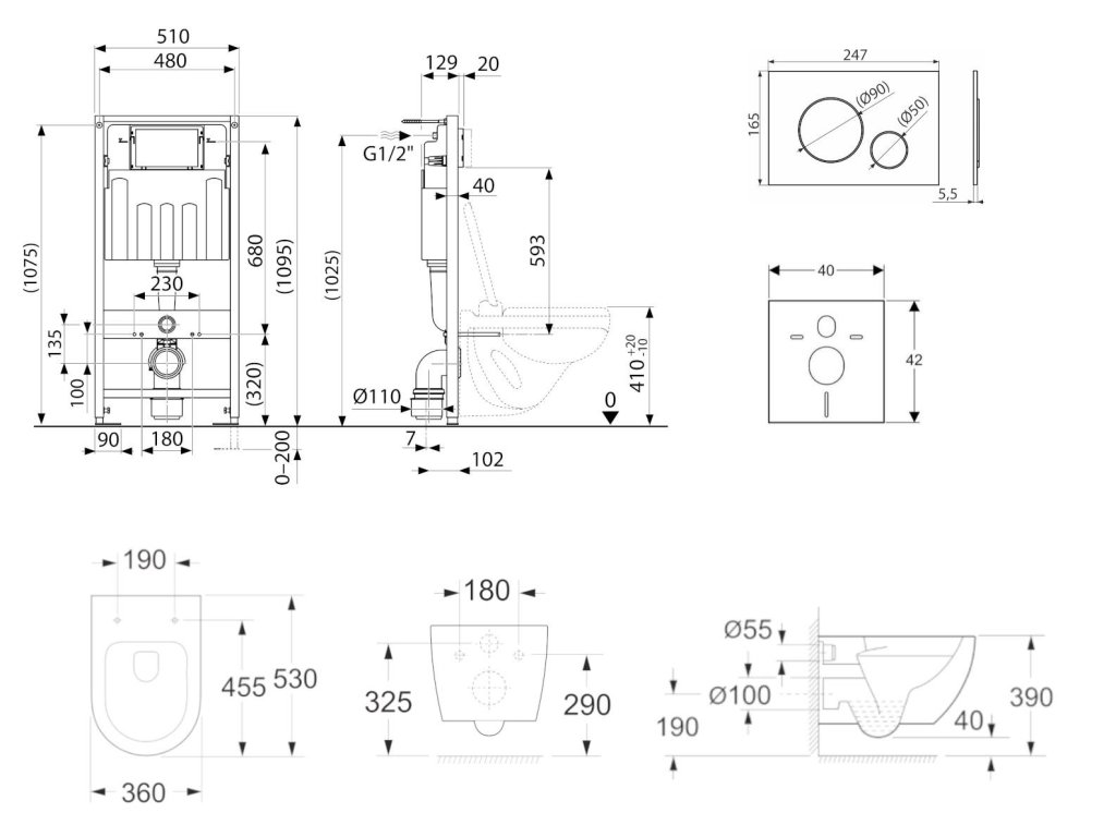 - Pro montáž závěsného WC s připojovací roztečí 180 mm