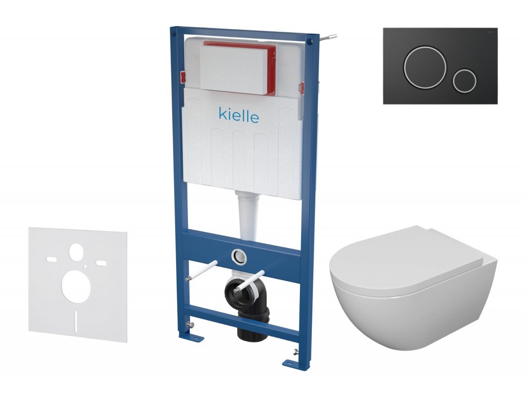 kielle Genesis - Set předstěnové instalace, klozetu se sedátkem softclose a tlačítka Gemini II, matná černá / chrom