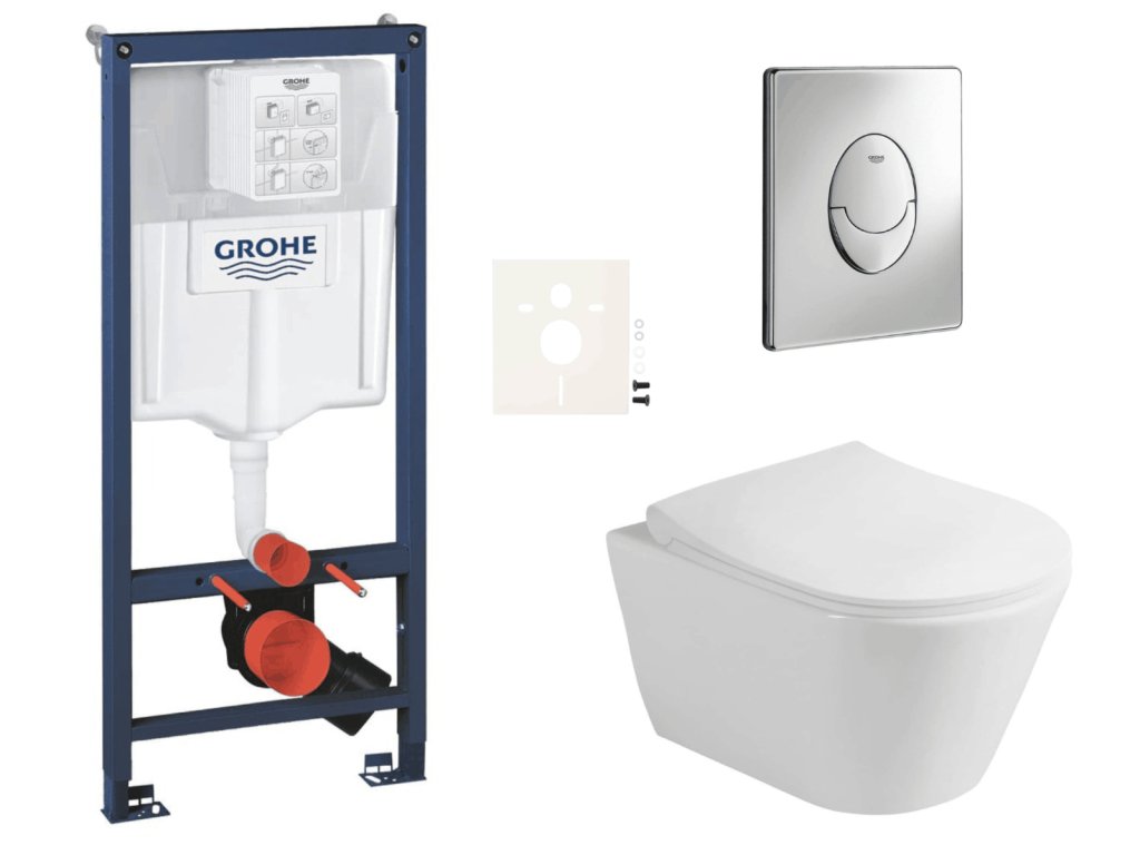 Závěsný wc set - sada obsahuje: modul do lehkých stěn / předstěnová montáž, WC nádržku GROHE, ovládací tlačítko Skate Air a WC sedátko.