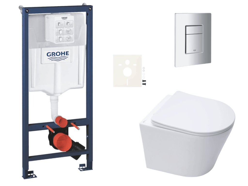 Závěsný wc set - sada obsahuje: modul do lehkých stěn / předstěnová montáž, WC nádržku GROHE, ovládací tlačítko Skate Cosmopolitan a WC sedátko.