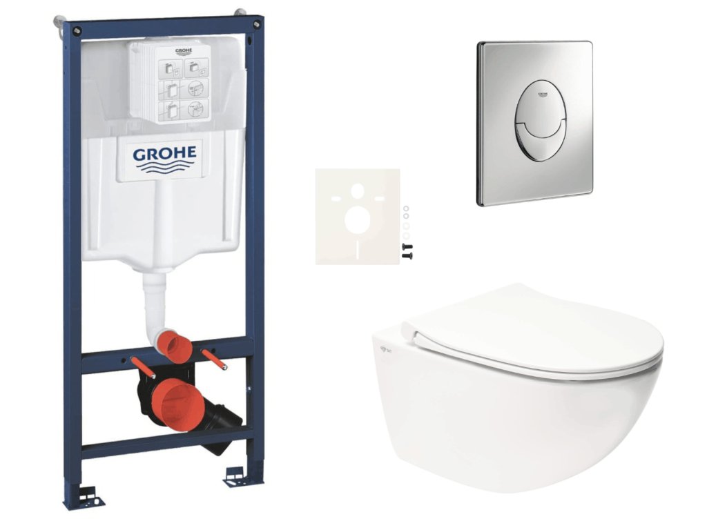 Závěsný wc set - sada obsahuje: modul do lehkých stěn / předstěnová montáž, WC nádržku GROHE, ovládací tlačítko Skate Air a WC sedátko.