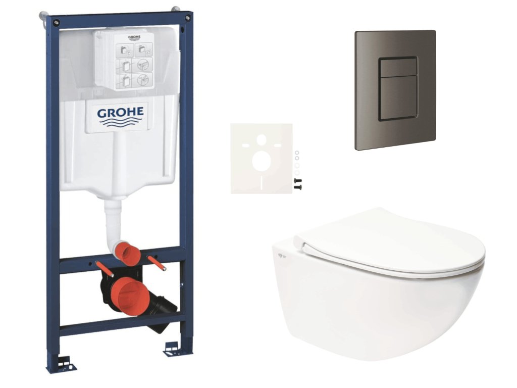 Závěsný wc set - sada obsahuje: modul do lehkých stěn / předstěnová montáž, WC nádržku GROHE, ovládací tlačítko Skate Cosmopolitan a WC sedátko.