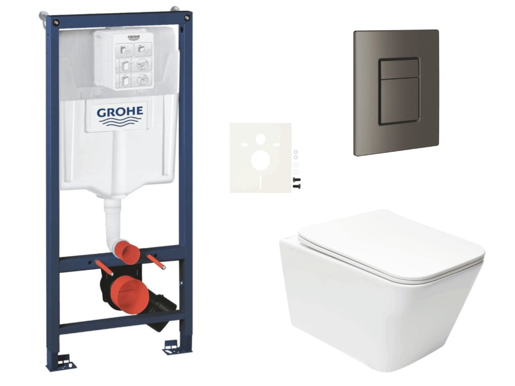 Závěsný wc set - sada obsahuje: modul do lehkých stěn / předstěnová montáž, WC nádržku GROHE, ovládací tlačítko Skate Cosmopolitan a WC sedátko.