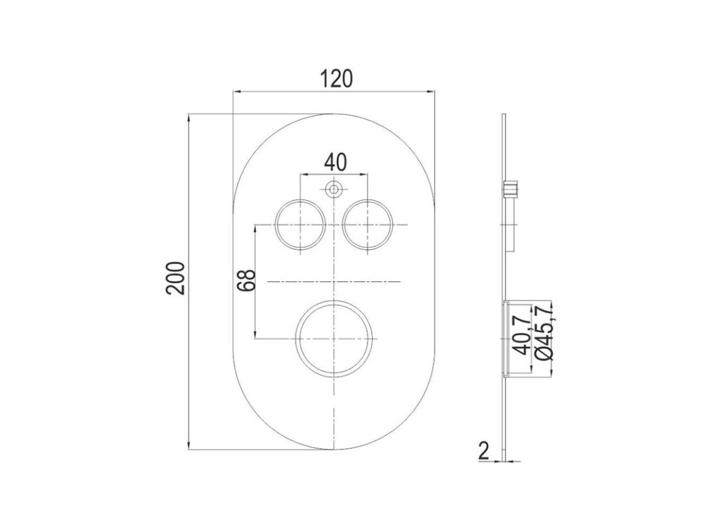 Kryt oválný pro 2-cestnou podomítkovou termostatickou baterii, 120 * 200 mm