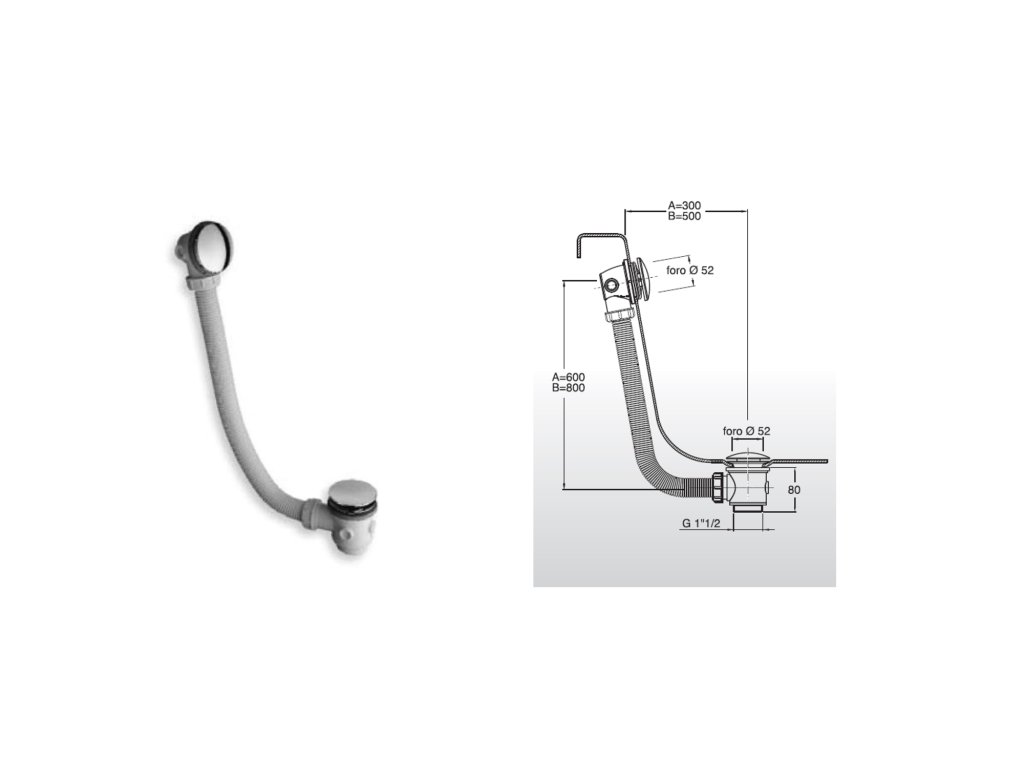 Vanová souprava click-clack, L-900mm, 6/4", ABS/chrom