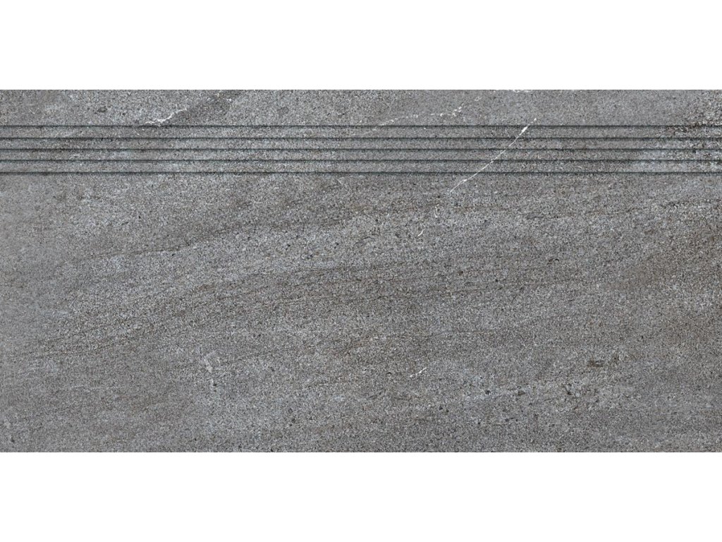 Mrazuvzdorná a rektifikovaná schodovka v šedé barvě v imitaci kamene o rozměru 29,8x59,8 cm a tloušťce 10 mm s matným povrchem. Vhodné do interiéru i exteriéru. S velkými rozdíly v odstínu barev, struktury povrchu a kresby. Vhodné do kuchyně, kanceláří.
