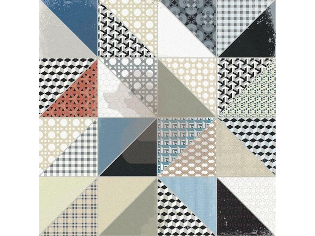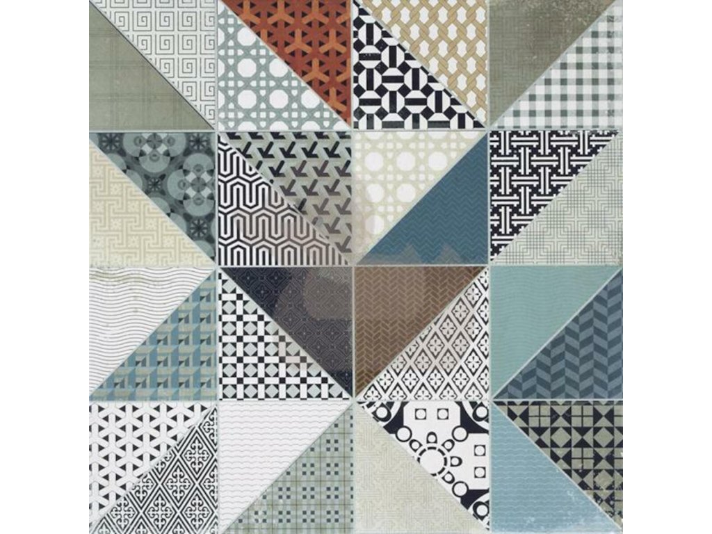 Mrazuvzdorný a rektifikovaný dekor v mixu barev v patchwork designu o rozměru 59,8x59,8 cm a tloušťce 10 mm s matným povrchem. Vhodné do interiéru i exteriéru. S velkými a nahodilými odchylkami v odstínu barev, struktury povrchu a kresby. Vhodné do kuchyně, kanceláří.