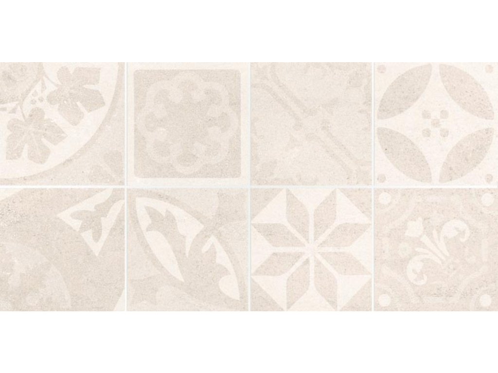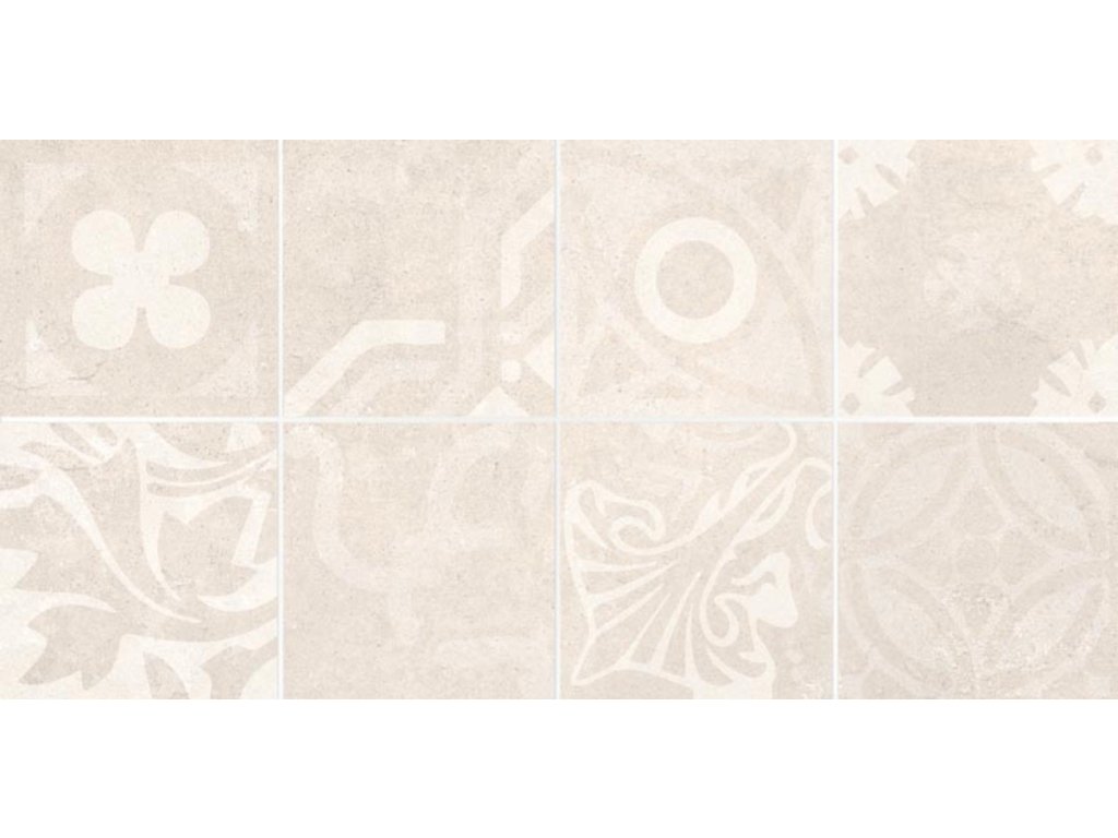 Dekor v béžové barvě v betonovém designu o rozměru 19,8x39,8 cm a tloušťce 7 mm s matným povrchem. Vhodné pouze do interiéru. S velkými a nahodilými odchylkami v odstínu barev, struktury povrchu a kresby.