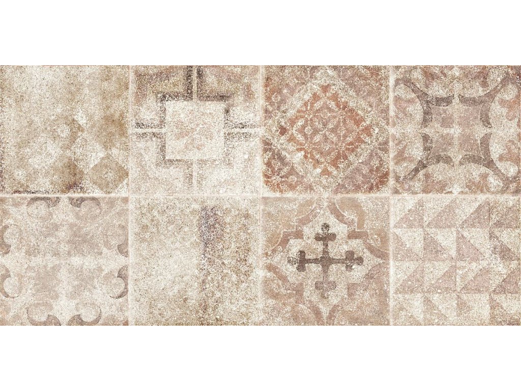 Rektifikovaný dekor v hnědé barvě v patchwork designu o rozměru 29,8x59,8 cm a tloušťce 10 mm s matným povrchem. Vhodné pouze do interiéru. S velkými a nahodilými odchylkami v odstínu barev, struktury povrchu a kresby. Pouze do vyprodání zásob, převod na novou tloušťku 8 mm. K objednání pod kódem WARVK262.1
