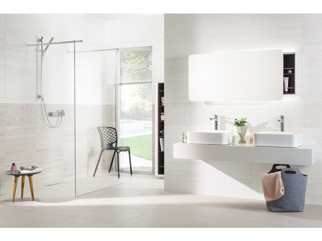 Rektifikovaný obklad v bílé barvě v imitaci mramoru o rozměru 29,8x59,8 cm a tloušťce 10 mm s matným povrchem. Vhodné pouze do interiéru. S velkými rozdíly v odstínu barev, struktury povrchu a kresby. Pouze do vyprodání zásob, převod na novou tloušťku 8 mm. K objednání pod kódem WAKVK525.1