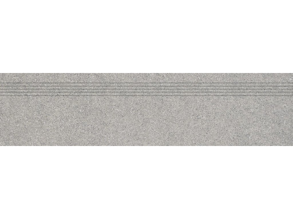 Mrazuvzdorná a rektifikovaná schodovka v šedé barvě v imitaci kamene o rozměru 29,8x119,8 cm a tloušťce 10 mm s matným povrchem. Vhodné do interiéru i exteriéru. S malými rozdíly v odstínu barev, struktury povrchu a kresby. Vysoce odolné proti opotřebení. Vhodné do hal hotelů, obchodů a garáže.