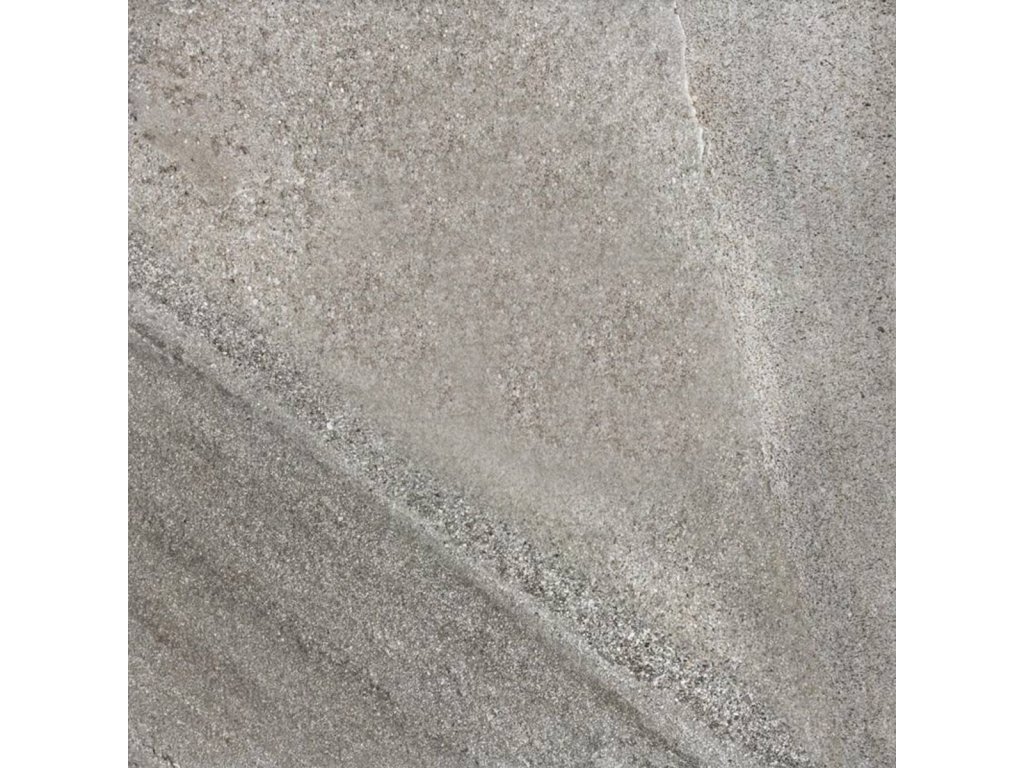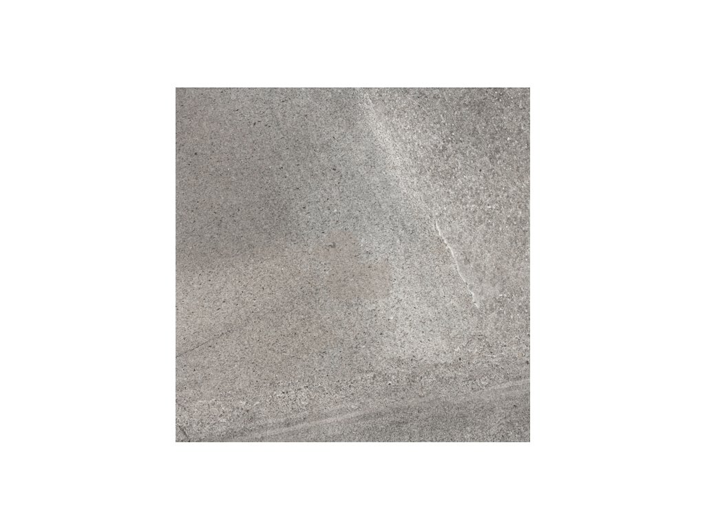 Mrazuvzdorná a rektifikovaná dlažba v šedé barvě v imitaci kamene o rozměru 59,8x59,8 cm a tloušťce 10 mm s matným povrchem. Vhodné do interiéru i exteriéru. S velkými a nahodilými odchylkami v odstínu barev, struktury povrchu a kresby. Vysoce odolné proti opotřebení. Vhodné do hal hotelů, obchodů a garáže.