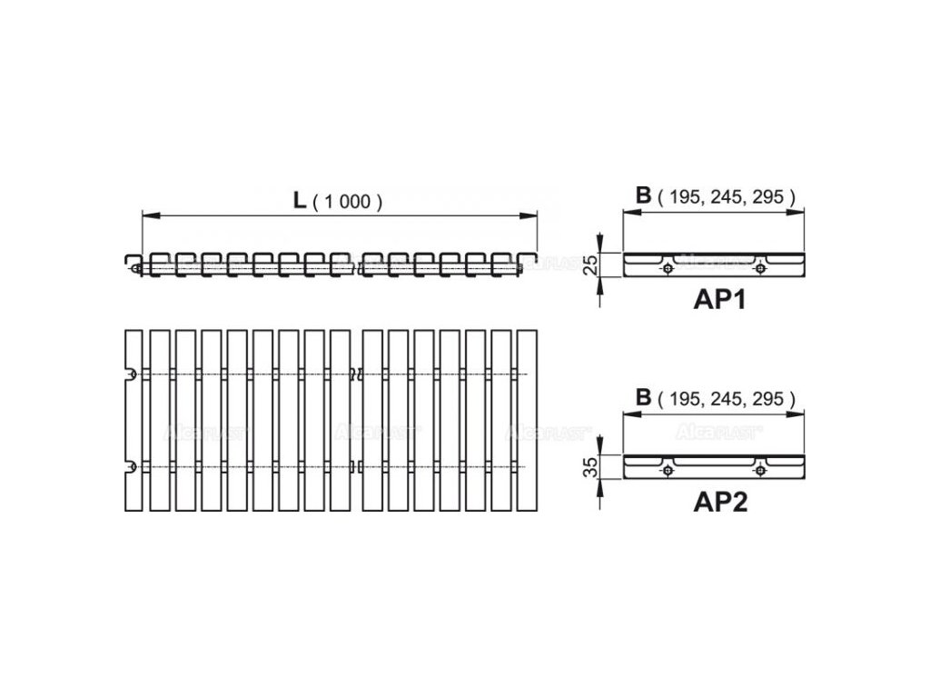 ALCAPLAST Bazénový rošt bez protiskluzu ALC-AP2-195-1000