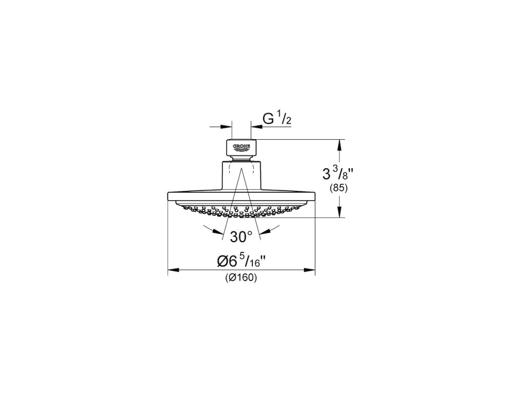 Hlavová sprcha s 1 funkcí s průměrem 16 cm s výškou 8,5 cm.
