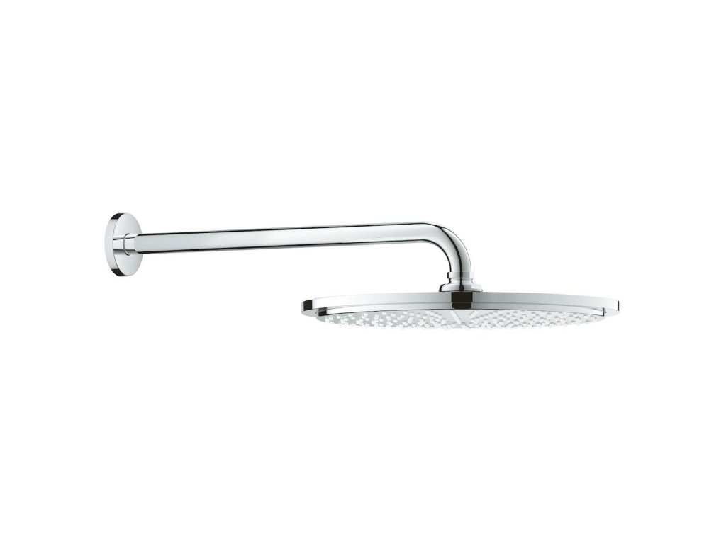 Hlavová sprcha včetně sprchového ramena s 1 funkcí s průměrem 31 cm s délkou 38 cm s výškou 9,5 cm.
