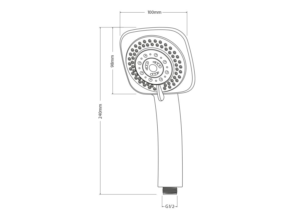 Ruční masážní sprcha, 5 režimů, 100x100mm, ABS/chrom