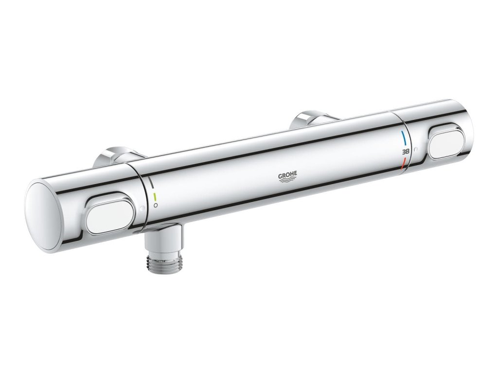 Termostatická nástěnná sprchová baterie bez sprchového setu. V chromovém provedení. Rozteč baterie 150 mm.