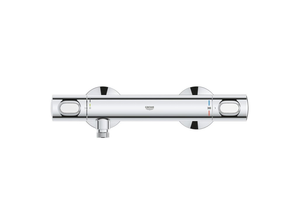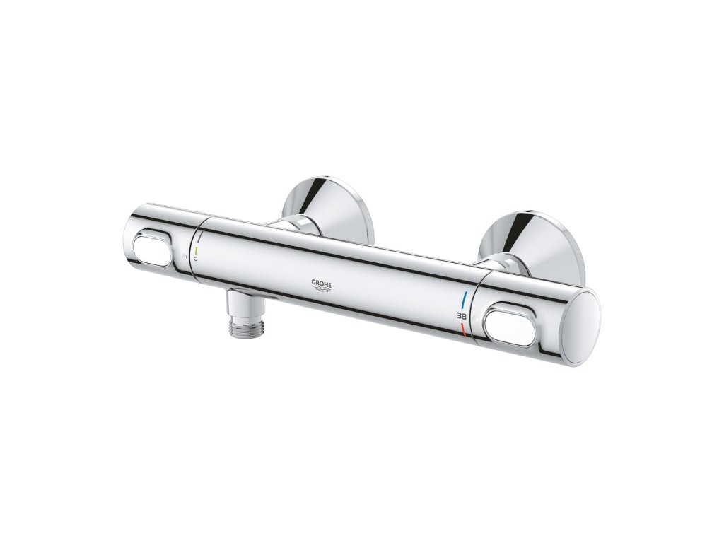 Termostatická nástěnná sprchová baterie bez sprchového setu. V chromovém provedení. Rozteč baterie 150 mm.
