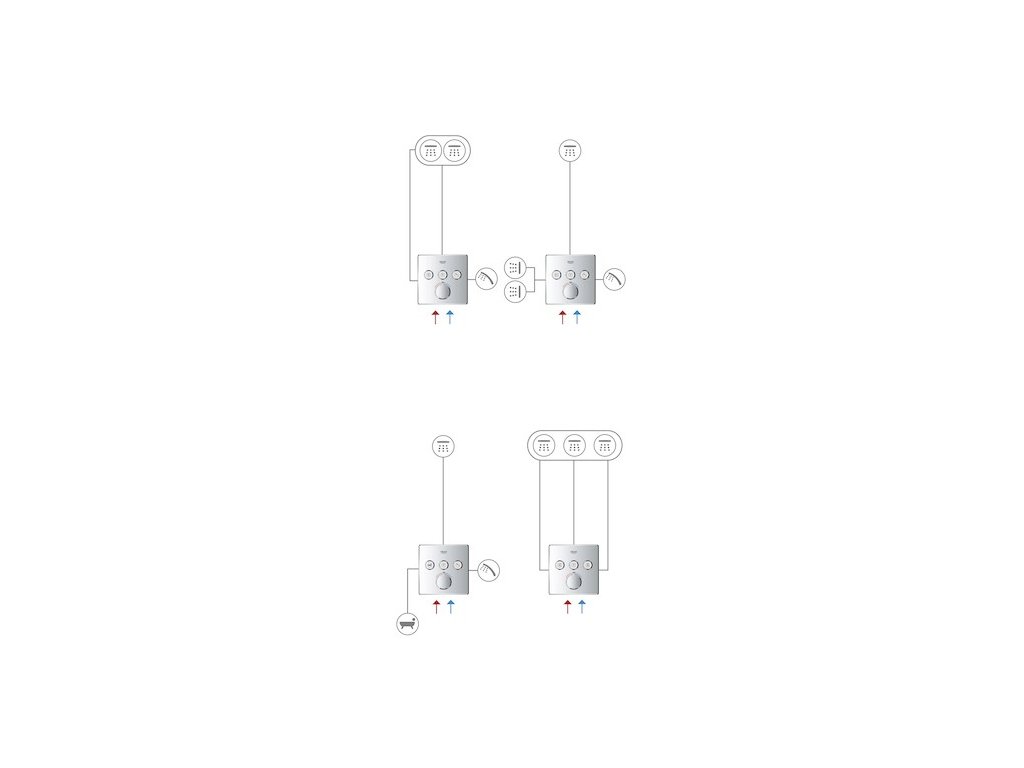 Termostatická podomítková baterie s třemi ventily v chromovém provedení. Barva měsíční bílá. Technologie SmartControl vám umožní přepínat mezi požadovanými zdroji proudu a regulovat objem vody a její teplotu pomocí otočných tlačítek. Tuto baterii je možné zapojit pouze v kombinaci s podomítkovým tělesem GROHE Rapido SmartBox (35600000). Technologie StarLight, FastFixation a SafeStop.