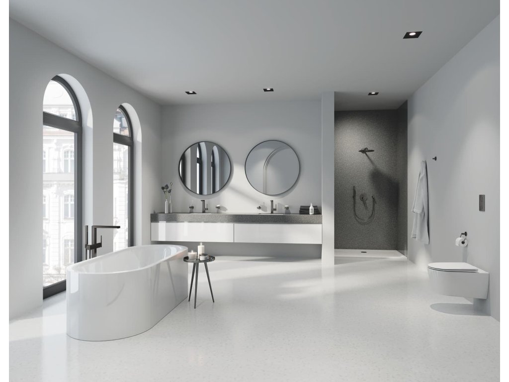Nástěnný držák sprchy v povrchové úpravě Brushed Hard Graphite. Technologie StarLight. Obsahuje kruhové kování. Doporučujeme kombinovat s výrobky: ruční sprcha GROHE Euphoria Cosmopolitan Stick (27400AL0), ramenem sprchové výpusti GROHE Rainshower (27057AL0) a sprchovými hadicemi GROHE Silverflex (28388AL0 a 28362AL0).